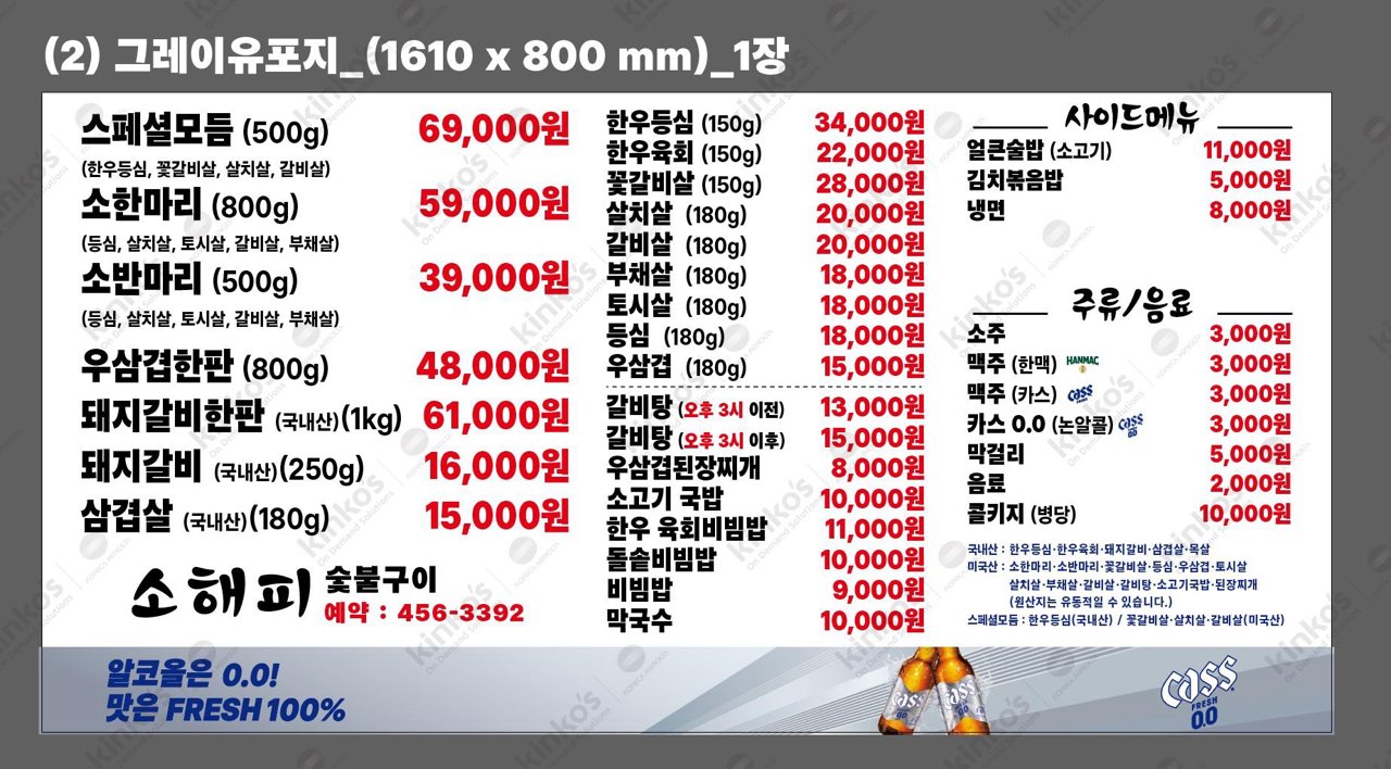 생소갈비 34,900 | 양념갈비 34,900 | LA꽃갈비 34,900 | 살치살 37,000 | 진꽃살 42,000 | 마늘갈비살 39,900 | 고기마니세트 75,900 | 럭셔리세트 59,900 | 커플A세트 44,900 | 커플B세트 47,900 | 된장찌개 4,900 | 물냉면 7,900 | 비빔냉면 7,900 | 멸치국수 (HOT) 6,900 | 고기싸먹는 비빔국수 6,900 | 돼지껍데기 6,900 | 계란찜 5,900 | 날치알 주먹밥 3,900 | 묵사발 6,900 | 참이슬 3,900 | 처음처럼 3,900 | 새로 3,900 | 진로이즈백 3,900 | 카스 3,900 | 테라 3,900 | 켈리 3,900 | 막걸리 3,900 | 청하 5,900 | 복분자 13,900