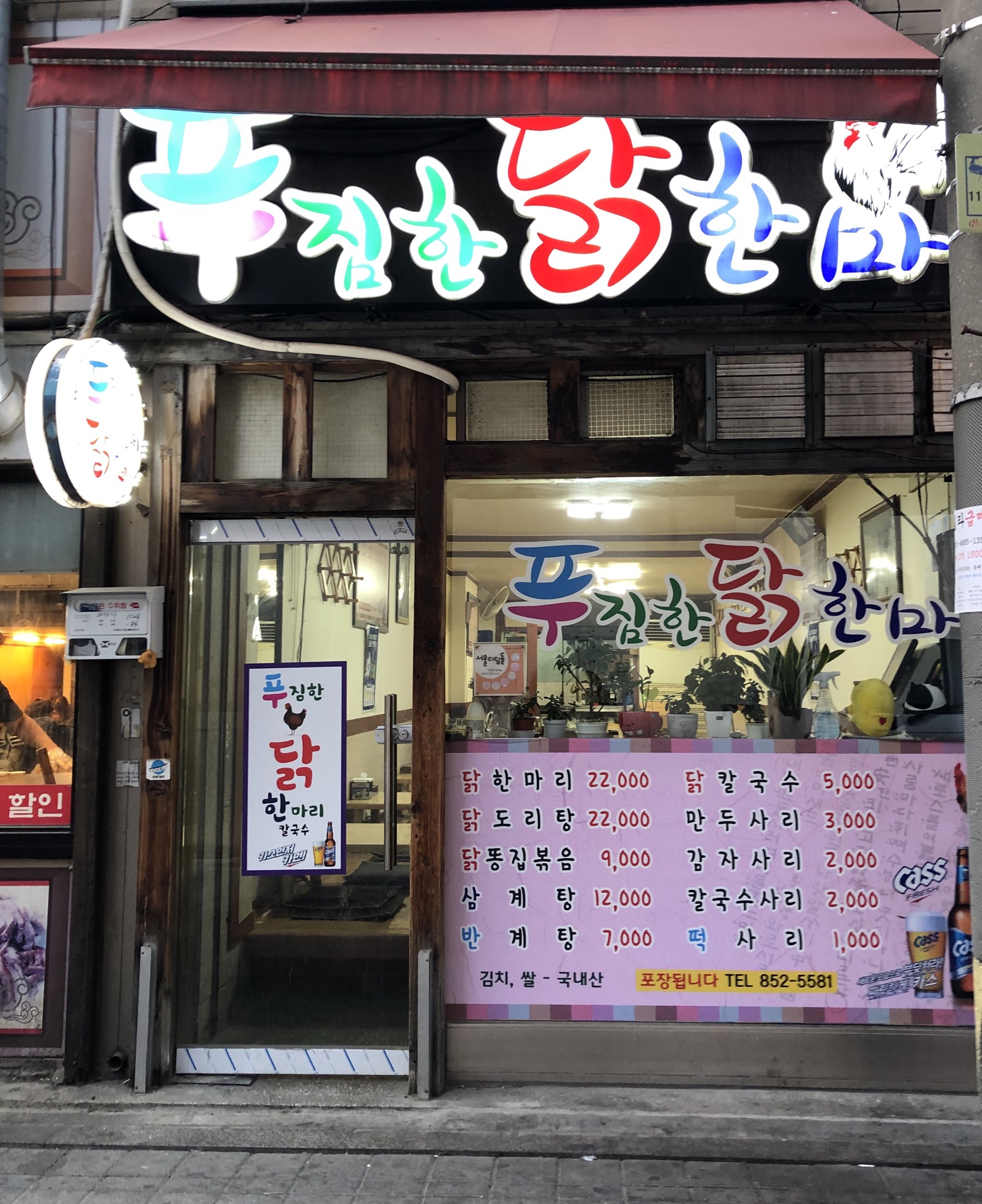 닭한마리 32,000 | 한마리반 48,000 | 닭도리탕 34,000 | 삼계탕 18,000 | 반계탕 10,000 | 만두사리 3,000 | 감자사리 2,000 | 칼국수사리 2,000 | 떡사리 1,000