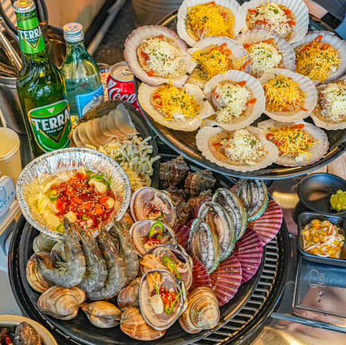 조개찜 2인 45,000 | 조개구이 2인 45,000 | 가리비찜 50,000 | 가리비구이 50,000 | 대하 소금구이 30,000 | 석화찜 30,000 | 조개모둠 20,000 | 가리비 25,000 | 전복(2미) 6,000 | 새우(1미) 1,000 | 칼국수 사리 3,000 | 치즈(구이 주문시) 3,000 | 해물부추전 15,000 | 새우튀김 15,000 | 오징어튀김 15,000 | 해물칼국수 8,000 | 해물라면 7,000 | 주먹밥 4,000