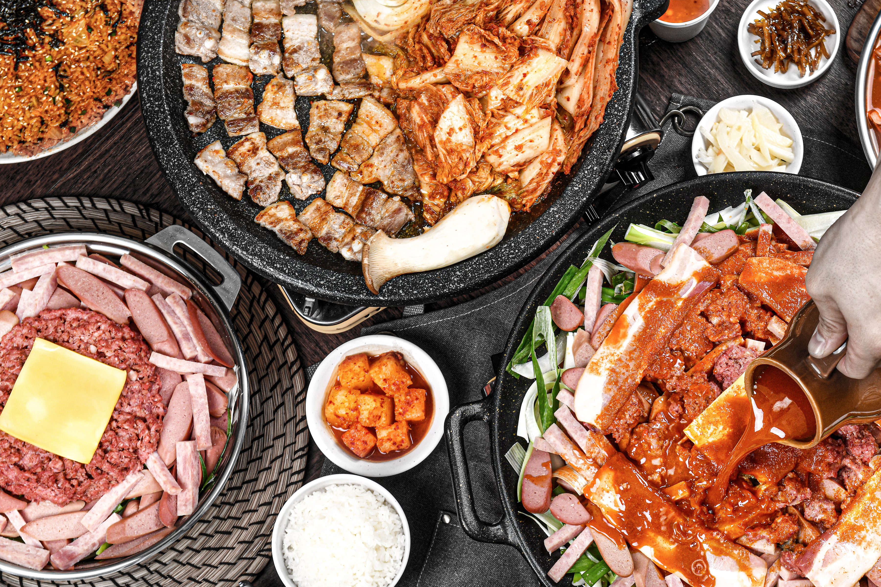 수제 한상차림 0 | 꽃오겹살 (100g) 7,950 | 대패삼겹살 (100g) 6,450 | 삼겹살 (100g) 6,950 | 목살 (100g) 6,950 | 갈매기살 (100g) 7,450 | 가브리살 (100g) 7,450 | 점심특선 🔥직화 제육볶음 7,900 | 김치장인 통영할매 쪽파김치 3,000 | 사천짜파게티 4,000 | 🍜새콤달콤~김치말이국수 (비빔/물) 6,000 | 🥘구수하고 진한 시골할머니 된장찌개 6,000 | 🔥치즈가 흘러넘쳐~ 폭탄 계란찜 4,000 | 🥃입안가득 상큼달콤! 짠돈 칵테일 5,900