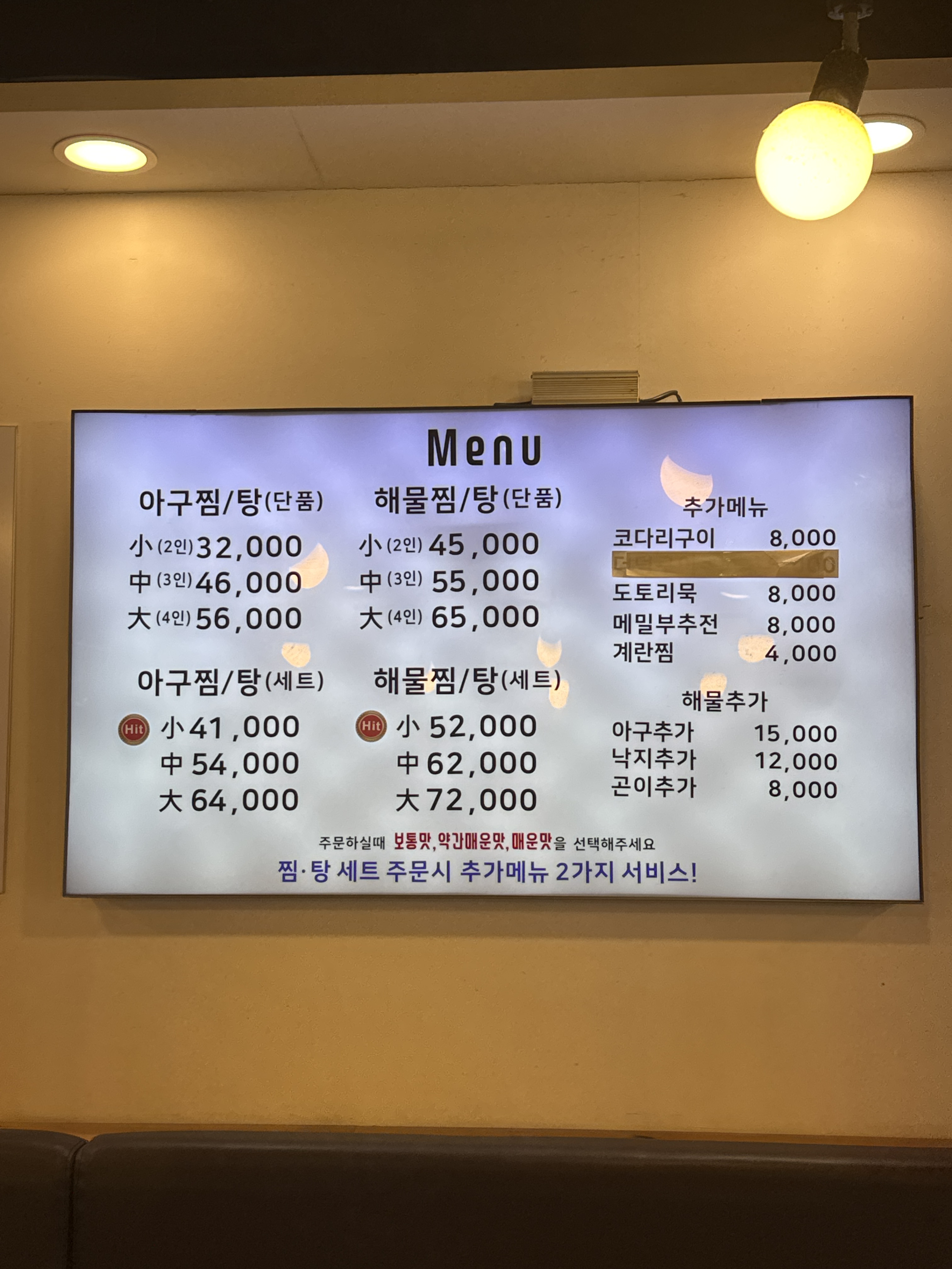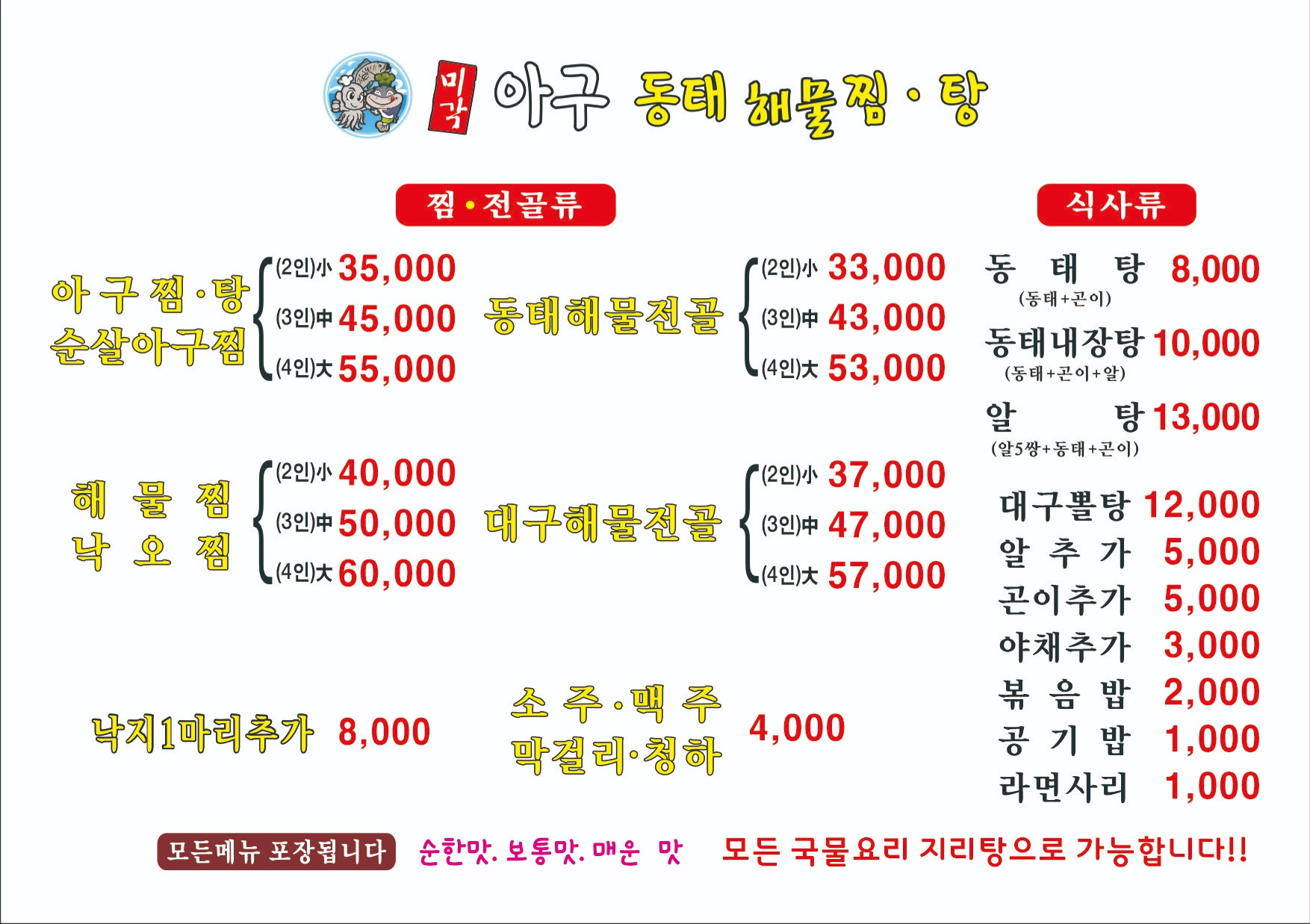 아구찜 35,000 | 동태탕 8,000